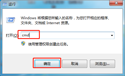 第二步,在弹出的【运行】命令窗口当中,我们输入【cmd】命令,并点击【确定】按钮。
