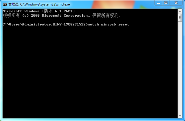 第三步,在弹出的窗口当中,我们输入【netsh?winsock?reset】重置LSP命令,然后按下回车键即可。