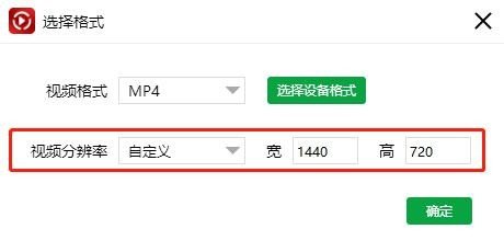 其中,选择自定义,可自由调整视频的宽和高,点击“确定”即可。