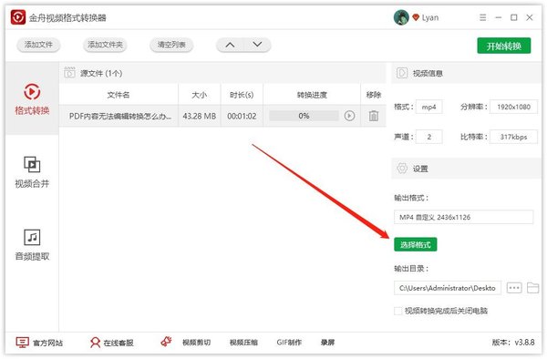 对于视频格式转换,视频合并,视频截取等视频编辑的相关操作,相信大家是再熟悉不过了。视频格式转换的软件有很多,在很多时候视频转换了格式之后的参数都会发生变化,尤其是视频的分辨率,尺寸,从而导致了视频画质的下降。所以今天就要跟大家讲讲如何修改视频分辨率/尺寸,但是又不改变视频原参数。需要您安装金舟视频格式转换器这个软件,这是一款多功能的视频格式转换器,支持视频格式转换、视频合并、视频转音频提取、视频与GIF互转等多种功能,强大高效的视频格式转换多功能工具,摆脱您对视频转换的烦恼!支持的常见视频格式:webm/f4v/ogv/3gp/avi/flv/gif/mkv/mov/mp4/等等。界面简洁,仅需要简单几步即可完成,是一款提高办事效率的办公小能手!