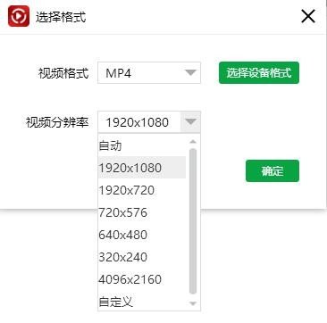 第三步、在以下窗口中,可设置视频分辨率,点击下来按钮可选择不同的分辨率。