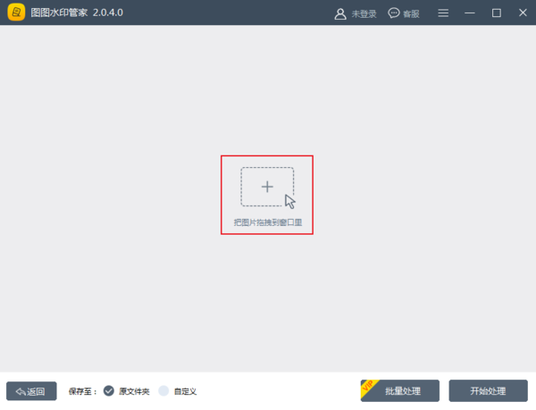 点击屏幕中间的加号,将需要去除水印的图片添加到软件中。