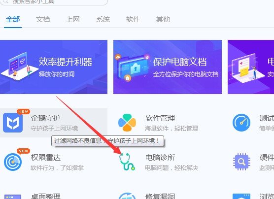 第二步,跳转到新页面之后,找到并点击【电脑诊所】这个选项,如果没找到可以在上方搜索。