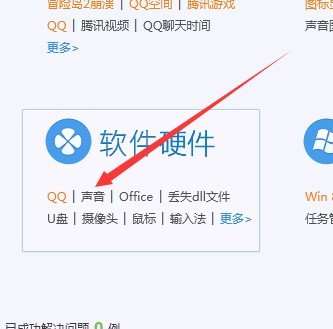 第三步,在电脑诊所里有一个【软件硬件】的模块里,点击选择【声音】,如下图所示。