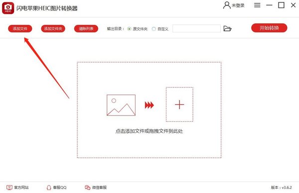 步骤一、下载闪电苹果HEIC图片转换器,然后打开软件,在左上方选择“添加文件”将需要转换的HEIC图片上传到软件上?。