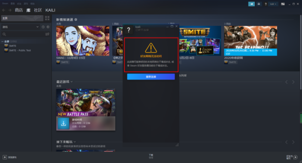 steam好友网络无法访问可能是因为自己处于离线状态导致的,此时我们点击steam好友网络无法访问提示信息下方的【重新连接】按钮,重新连接成功后,就可以看到好友列表了。