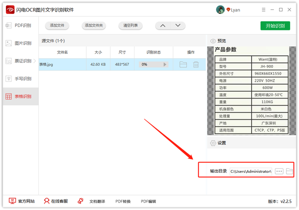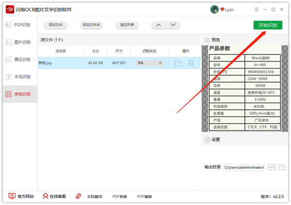 第一步、双击打开软件,在软件左侧选择“表格识别”。