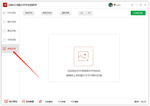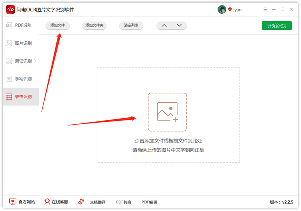 第二步、然后,点击“添加文件”,将表格图片上传到软件中。