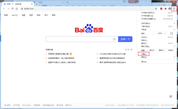 首先打开谷歌浏览器,点击右上角的…,选择设置。