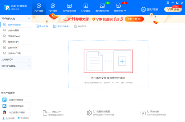 点击软件中间的添加文件,将PDF文档添加到软件中。