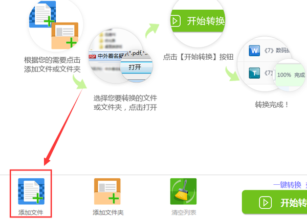 第三步,准备工作都完成之后,点击【添加文件】按钮,把PDF文档添加进来。