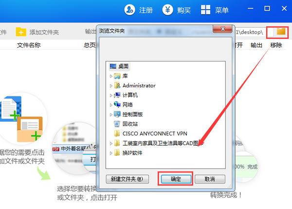 第二步,小编习惯于先把准备工作都做好在添加PDF文件,所以就设置提取出的图片存储位置,点击右上角的文件夹形状按钮选择即可。