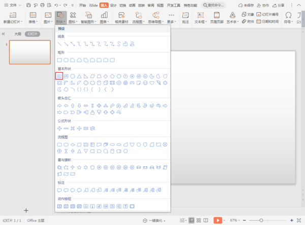 新建一页PPT幻灯片,点击插入—形状,选择文本框。