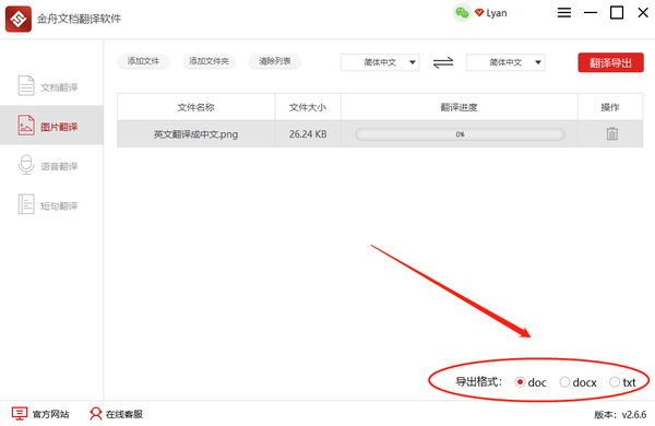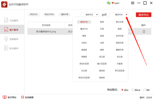 这是一款体积小、功能强大的文档翻译神器,它的界面简洁、容易上手。利用该软件,我们可以快速翻译文档,其中包括文档翻译、语音翻译、短语翻译等,支持多个国家的语言,一键添加文件即可翻译。操作简单,实用性十分强。如果想要翻译图片中的文字,我们可以直接将图片上传到软件中进行翻译,不会操作的小伙伴,一起来看看是如何操作的吧!