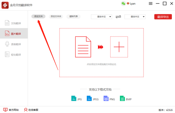 第二步、其次,再点击“添加文件”将需要翻译的图片上传到软件中。