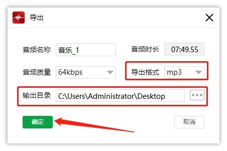 第七步、最后,在这里设置导出的格式和输出目录,点击“确定”就结束了!