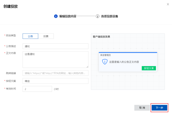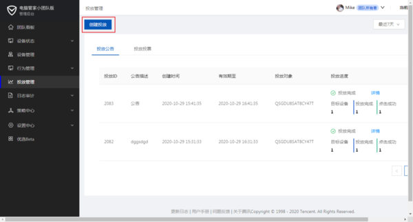 以上就是使用电脑管家小团队版投放公告的方法,使用起来非常简单,日常一些简短的通知都可以使用这个功能进行推送,推送成功后还可以在后台查看推送效果。