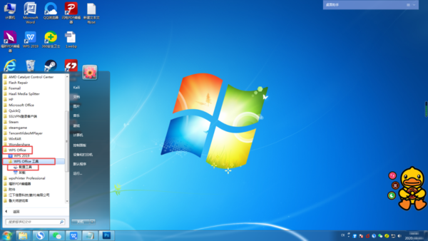 第二步,在电脑的所有程序菜单当中,我们找到【WPS?Office】选项,然后点击打开,接着在弹出的选项中,我们选择【WPS?Office工具】选项,然后选择其下方的【配置工具】。