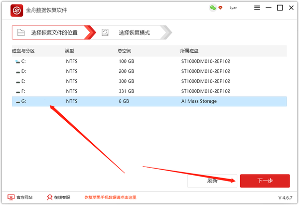 平时在使用u盘、SD卡或者移动硬盘等设备时,由于某种操作不当,插入电脑时,会有“磁盘G:未被格式化”的提示;系统要求进行磁盘格式化,如果磁盘中有重要的数据就不能随便格式化,下面来看看如何利用该软件恢复磁盘数据,只需要简单几步就可以实现,下面是详细的操作步骤,希望能帮到你们!