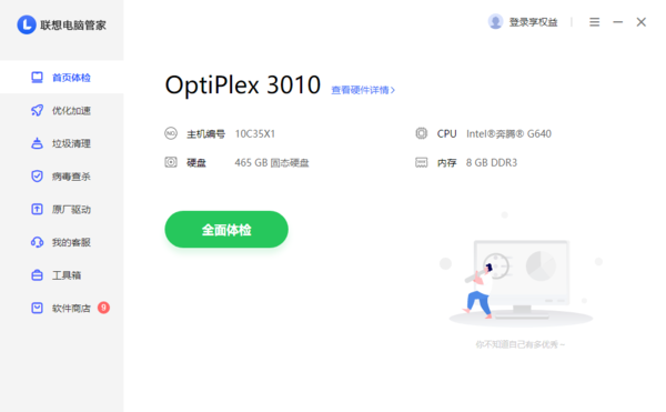 联想电脑管家是一款功能强大,针对于联想电脑设备而生的安全监测软件,建立了和联想设备用户之间的联系,并为其解决相关问题。联想电脑管家的界面简洁清晰,内置了电脑体检、硬件驱动监测、垃圾文件清理、网络维护等功能,同时联想电脑管家还提供售后信息的查询页面,网络诊断还可以解决无法上网问题,让广大用户可以安全安心上网。
