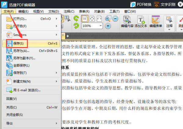 第四步,PDF空白页删除完成之后,一定要记得保存文件哟,点击页面左上方【文件】选项下的【保存】即可。