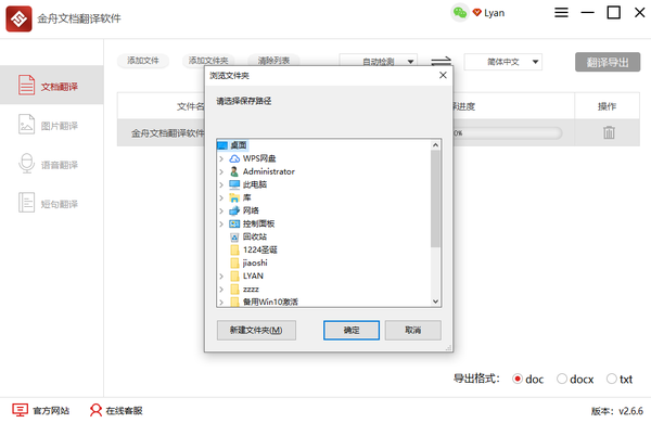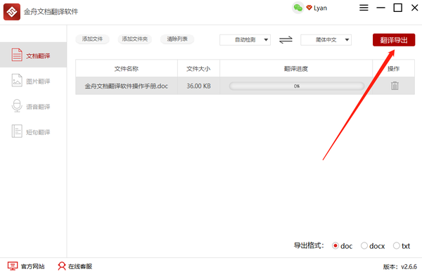 第一步、双击桌面图标,打开软件,在操作界面左侧选择第一个翻译功能“文档翻译”。
