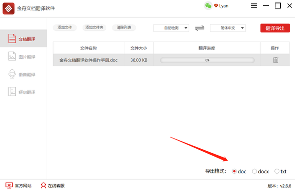 第四步、接下来,在操作界面右下角,我们还能选择翻译后导出的文件格式,大家可根据需要选择勾选。