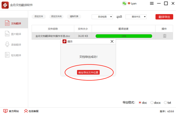 第七步、耐心等待几秒钟后,翻译完成了,点击“前往导出文件位置”。