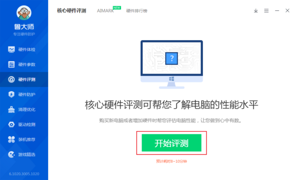 在硬件评测界面点击右侧的开始评测,等待鲁大师进行测试。