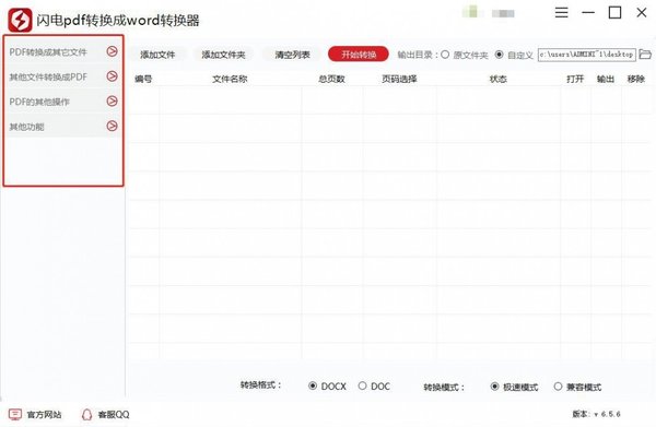 2、成功安装好闪电PDF转换成WORD转换器后,双击打开软件,左侧是该软件支持的所有功能选项,用户想要怎样转换功能就选择相应的选项;