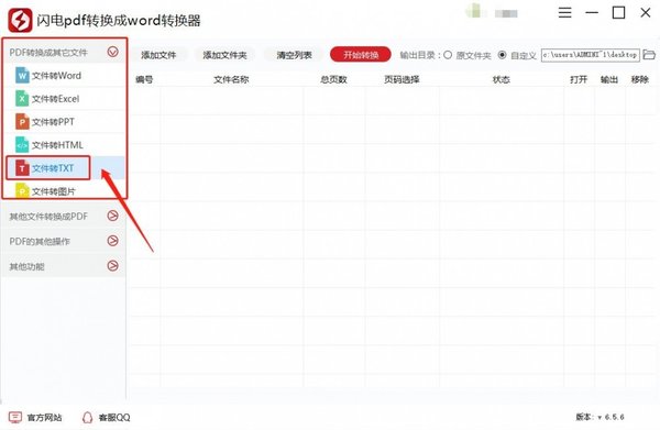 3、在这里,我们选择左侧选项栏里的”PDF转换成其他文件”中的”文件转TXT”;