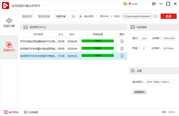 一说到视频分割合并,大家肯定就会想到各种视频剪辑软件。比较专业的软件那得非Pr莫属了,那么这些软件对大神来说当然是完全没有任何的使用难度。但是对于职场小白来说,可就没有那么简单了。单单就只是操作主界面都难倒一片人呢。当然,如果只是单纯想要合并视频文件,其实可以选择一些简单的工具。比如说,这里用到的视频分割合并工具:金舟视频分割合并软件。它除了切割合并视频外,还能转换视频的格式,功能非常强大,下面就一起来看看具体的操作方法吧。