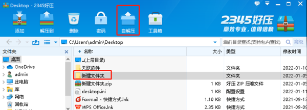 想要生成自解压文件的小伙伴,在打开2345好压客户端后,首先要找到需要压缩的文件或文件夹。选中之后,点击页面上方的“自解压”按钮。