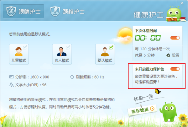 点击健康护士页面右侧的按钮,开启视力保护色。