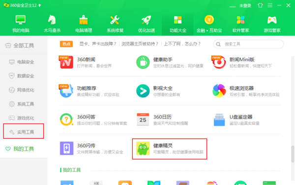 点击左侧的实用工具,下拉找到健康精灵,点击后等待下载。