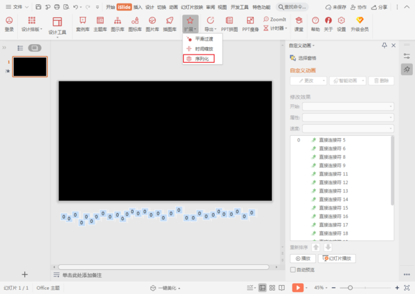 选中全部直线,点击iSlide—扩展—序列化。