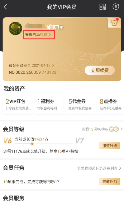 第二部:进入会员点击自动续费,点击关闭自动续费