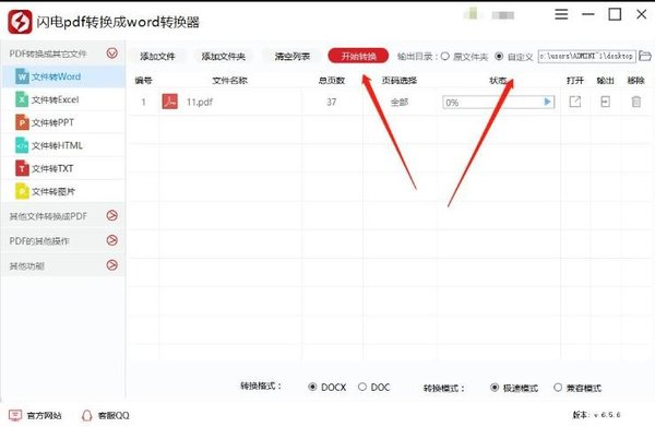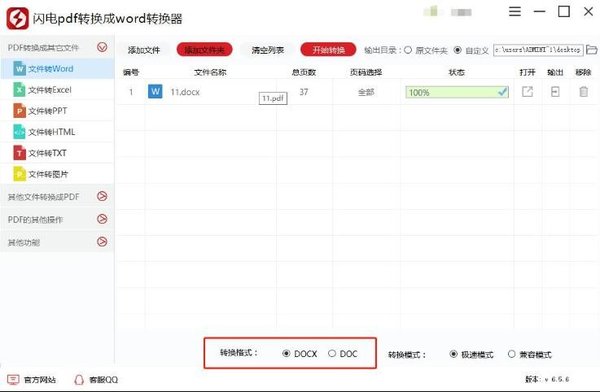 六、转换过程中需要耐心等待一段时间,请用户们耐心等候,操作界面下的转换格式我们可以在转换钱更改,一般默认为DOCX格式。