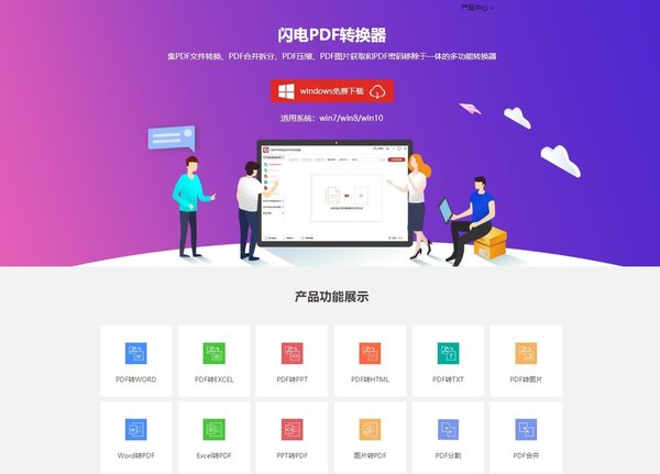 一、首先在浏览器上搜索“闪电PDF转换成WORD转换器”,然后找到官方网址进入到网站首页中下载该软件。