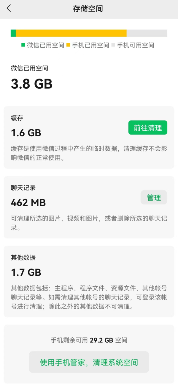 据悉,8.0.24最新内测版iOS微信新增加了存储空间细分的管理功能,此功能其实在8.0.22版安卓微信中就已经进行了更新,而存储空间管理功能在加载逻辑和操作上进行了大规模的更新。而在没有更新到8.0.24最新内测版iOS微信中时,此前的iOS微信只能选择一次性清理所有的缓存。