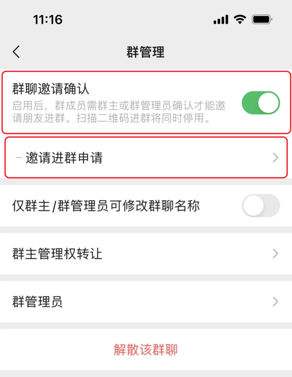 iOS微信8.0.22最新版带来的第三个更新内容是邀请进群申请方面的,当群主在群管理中开启了【群聊邀请确认】后,在群管理页面中会出现一个【邀请进群申请】的选项,在这里我们可以看到当前的申请入群的记录。而在群聊界面中,会在群公告的位置以弹窗的形式出现新邀请进群申请,点击进入后,群主就可以进行邀请的确认,同时还会显示这位成员是否被移出过该群聊。