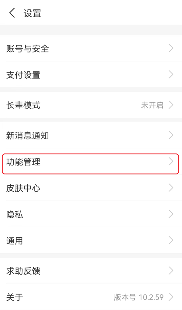 2、进入到支付宝的设置界面当中后,找到【功能管理】界面,并点击进入。