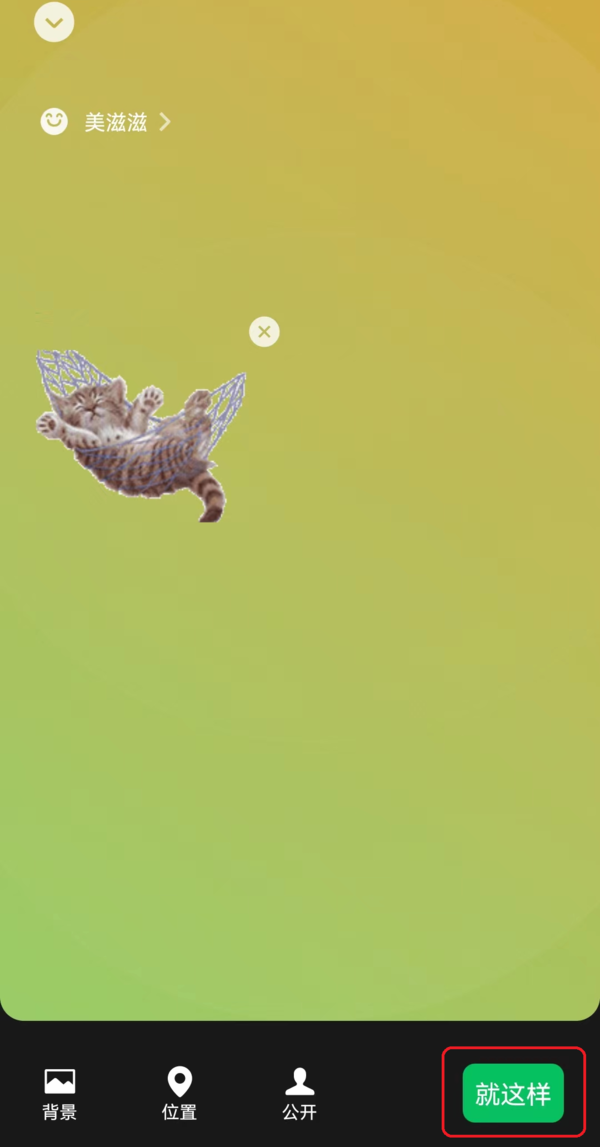 7、最后,我们点击【就这样】按钮将这个状态设置成自己的微信状态,就可以在自己的微信状态中看到蹦蹦跳跳的宠物或家禽了,大家也赶快去试试吧。