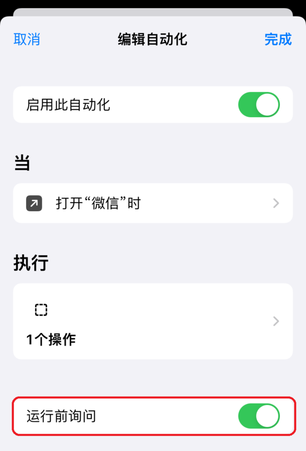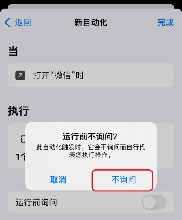 iPhone手机微信更换图标后的打开APP快捷指令运行弹窗怎样关闭