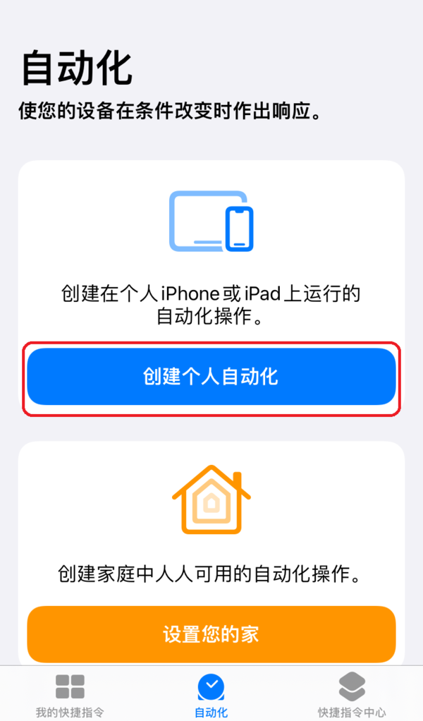 2、然后在自动化界面中,点击【创建个人自动化】选项按钮。