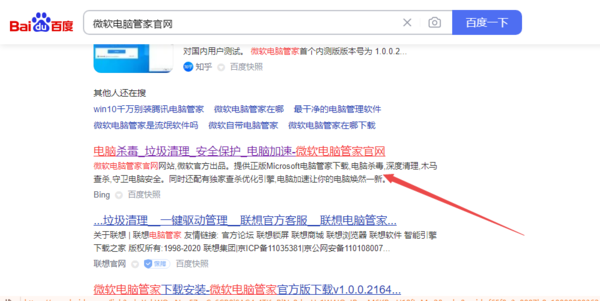 打开电脑上的任意一款浏览器,然后输入【微软电脑管家官网】,然后我们找到官网并点击进入。