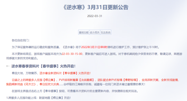 在逆水寒发的转发微博中,官方提到了逆水寒新的资料片推出的多人跨服庄园(栖云集),而就在今天,逆水寒发布了更新公告,一起来看看有哪些新内容吧: