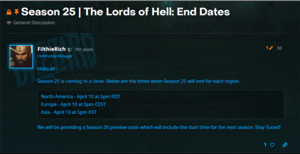 暗黑破坏神3第25赛季将于4月10号结束,其中亚洲地区在韩国标准时间4月10号下午5点结束,北京时间则是4月10日下午4点。在即将推出的2.7.3版本26赛季中,主题将为梦魇回响。那么梦魇回响究竟是怎样的呢?