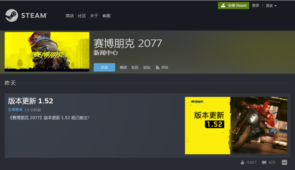 赛博朋克2077游戏1.52最新版本何时更新上线