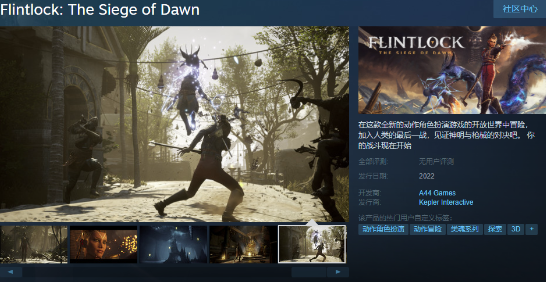 由A44?Games开发、Kepler?Interactive制作开放世界动作角色扮演游戏《Flintlock:?The?Siege?of?Dawn》于今日正式登陆Steam商店,这款全新的动作角色扮演游戏的开放世界中冒险,加入人类的最后一战,见证神明与武器的对决吧,是时候出动联盟军队夺回他们的世界了。运用火药和魔法展开复仇,踏上一段史诗般的旅程,带领人们对不死军团进行最后的围攻,配置要求如下,感兴趣的小伙伴可以下载试玩哦!